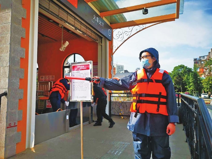 在地铁入口处安装挡水板