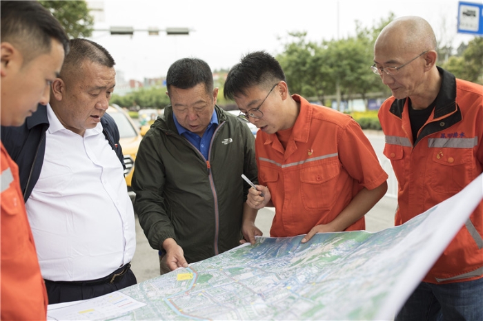 6月6日,龙泉路昆八中门口,巡查排水公司防涝准备工作